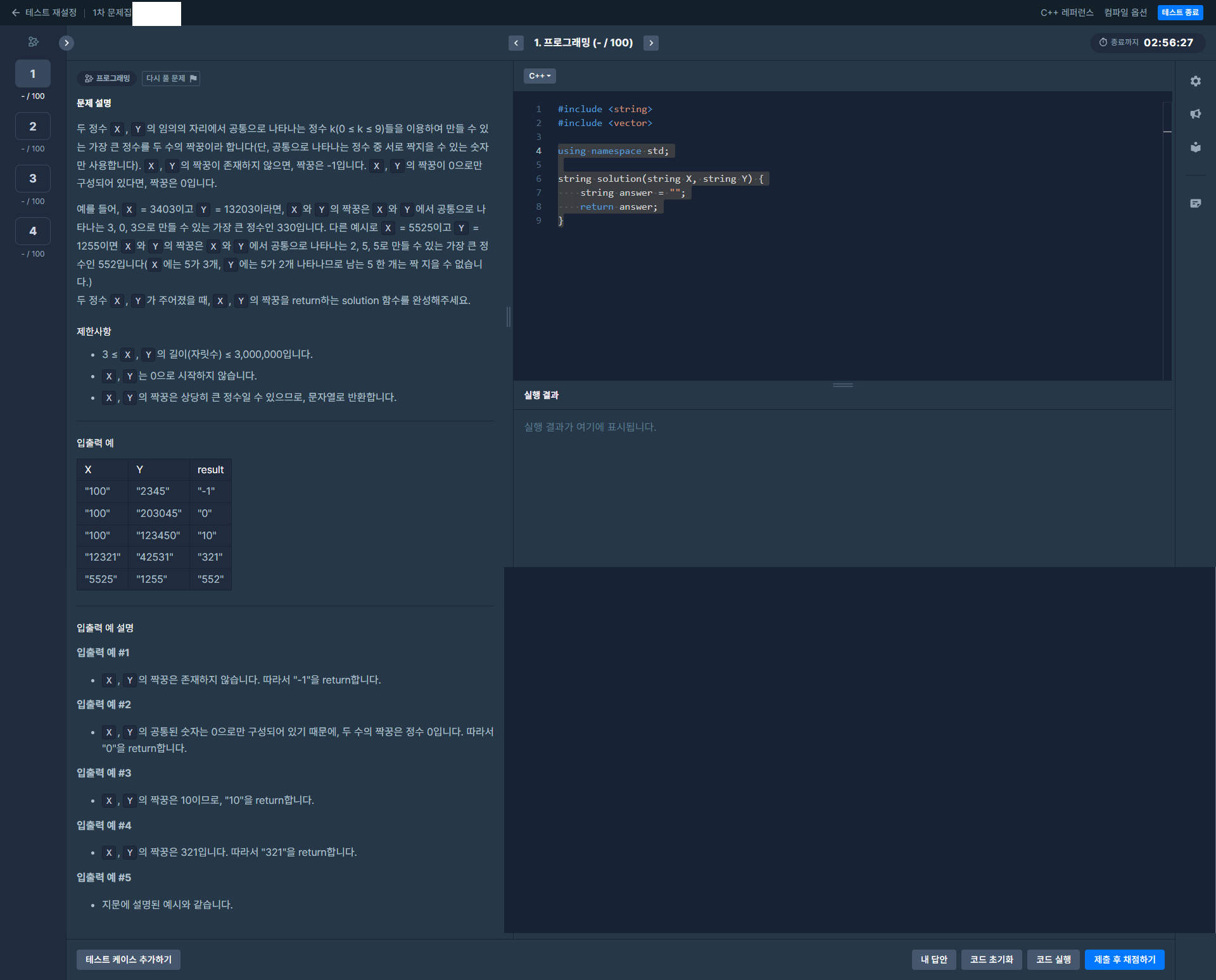 4문제에 3시간을 줬지만 새벽에 풀어서그런가 생각보다 머리가 잘 돌아가더군요