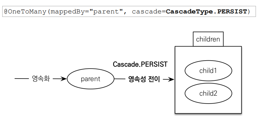 • 예: 부모 엔티티를 저장할 때 자식 엔티티도 함께 저장
