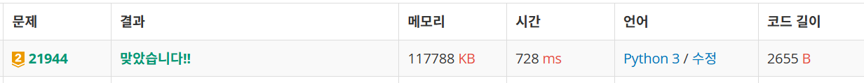 문제 URL : https://www.acmicpc.net/problem/21944